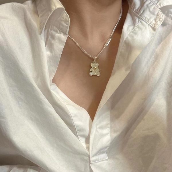 Wholesale 925 Sterling Silver Bear with Tang Grass Necklace