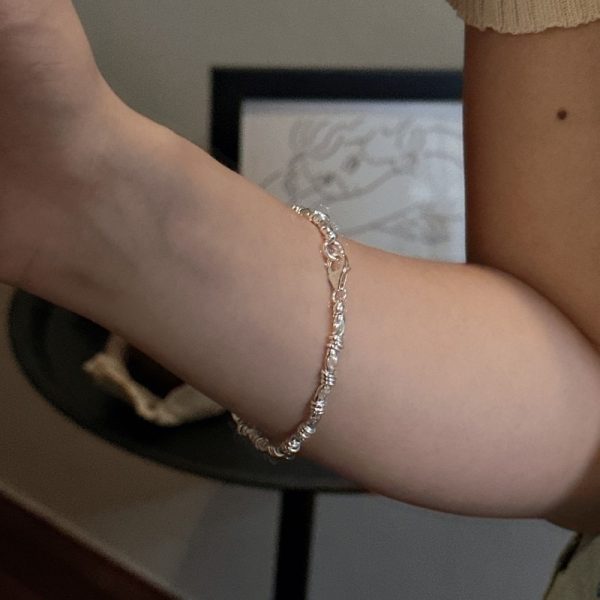 Wholesale 925 Sterling Silver Glitter Rice Bead Bracelet
