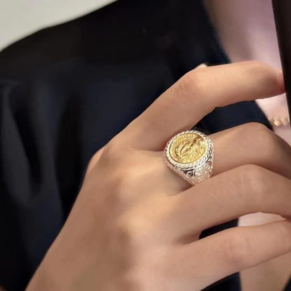 Wholesale 925 Sterling Silver Portrait Tanggrass Gold and Silver Ring