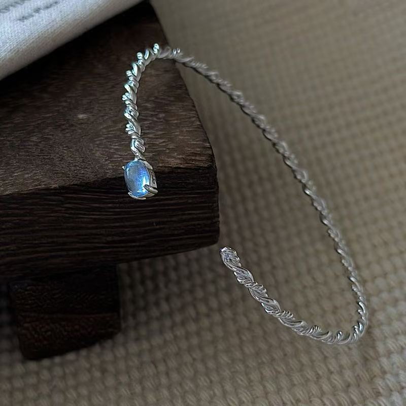 Wholesale 925 Sterling Silver Aquamarine Twisted Bangle
