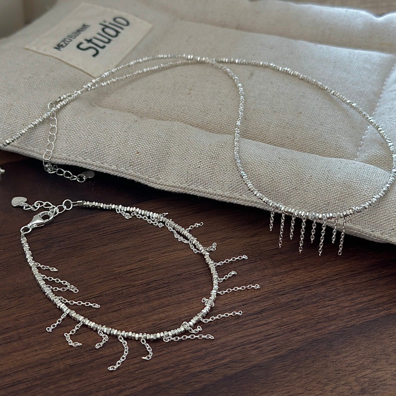 Wholesale 925 Sterling Silver Broken Silver Tassel Necklace & Bracelet