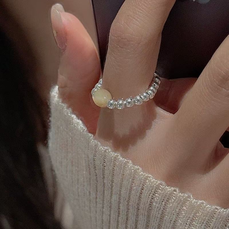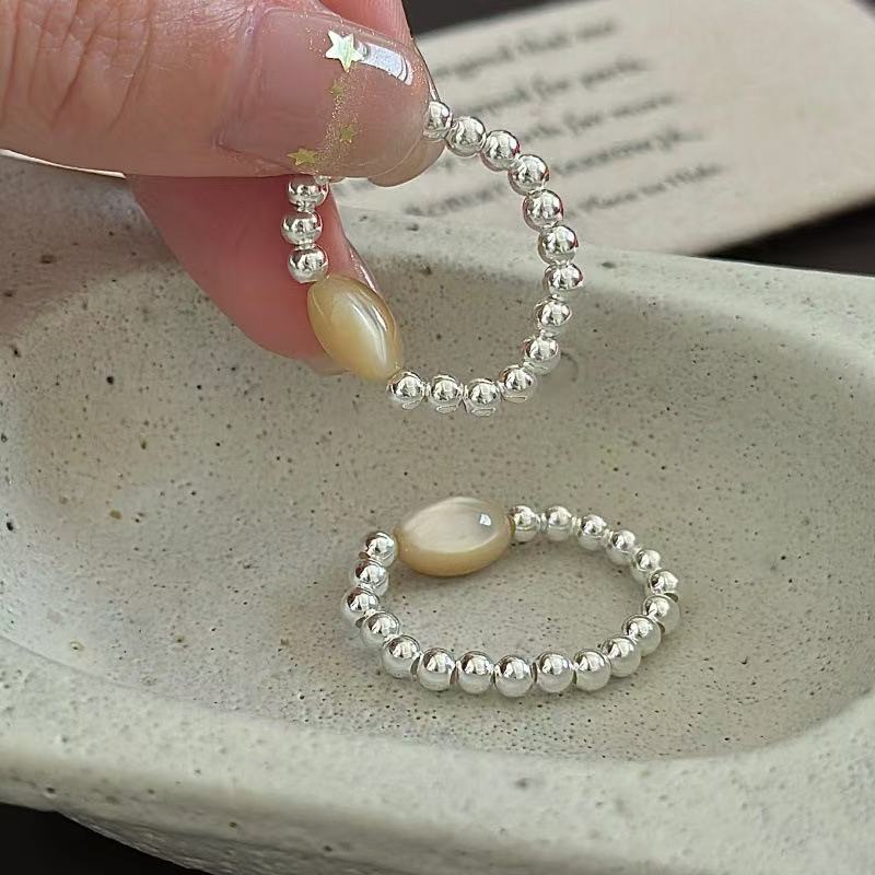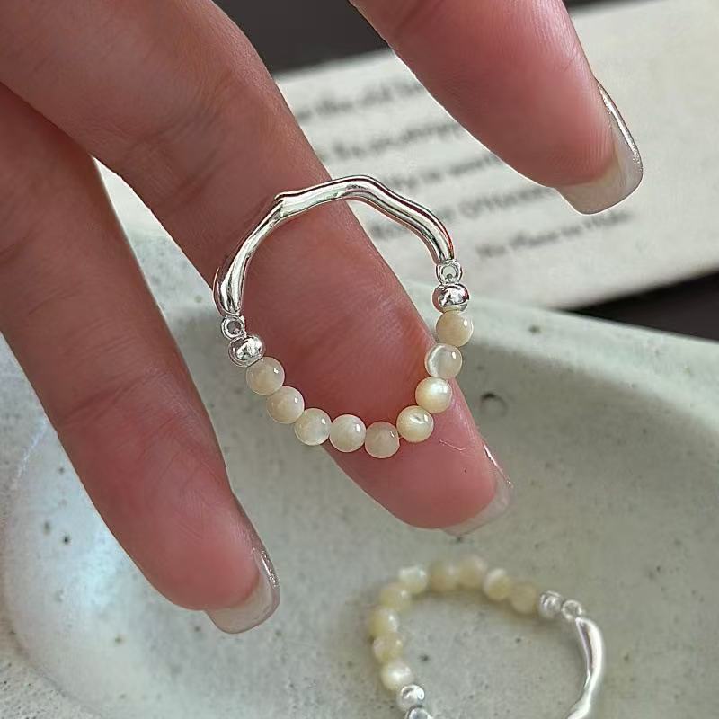 Wholesale 925 Sterling Silver Natural Stone Beaded Ring