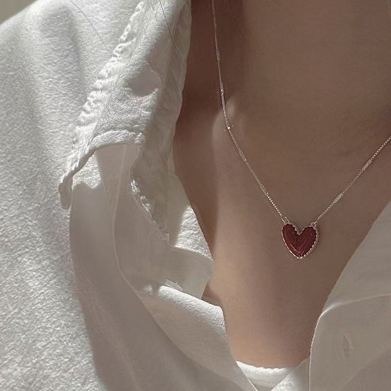 Wholesale 925 Sterling Silver Red Enamel Heart Necklace